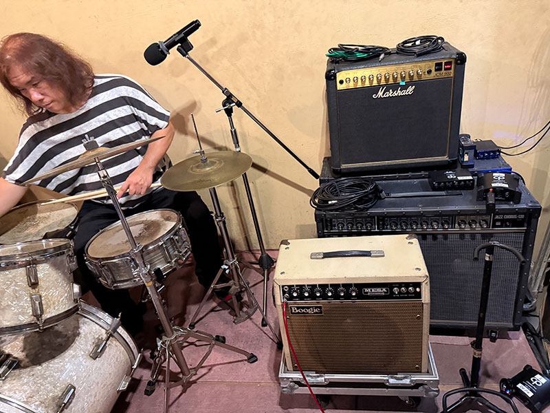 2025/08/26火 叫ビ隊・開運堂ナッシュビルでスタジオ練習 ↓前 次↑ 生誕祭までに諸作業目白押しであります、入稿ご褒美で東京ツアーぶっ込んだツケですな。先月のライブ動画もあと2本ありますな、レアな地元のディスコ ミラーボールでの叫ビ隊のモヨウを。踊りやすいかなと2部の1曲目に選んだえせFUNK「いそがしい毎日」ですが店主がエエ声のDJで合いの手入れてクレてたまらんデスな。富田さんがビデオカメラ撮れるように動かしてくれてるのもええ感じでグルーヴしています。機材持ってくのは大変やけどまた演りたいですね。 【動画はココにも】TOP(ミニ及び各バンド)・PV・叫ビ隊ページ。SOBページ。自作曲一覧。シャウターズはココ。私の歴史動画。 アルバム類。 色々やってたらもう夕方化、練習2本やナッシュビルへ行きましょう2バンド分の機材持って。 ![]() 19時からまずは叫ビ隊ですな、週末の長居Depoのゲネですがサブボードがヤバいね。メンテしたいが。。 ![]() 新しい物はなかなかでした。 ![]() 後半かせやんさん到着で9/7生誕祭ゲストEG部分を。結構久々入ってもらいます。 ![]() 21時からは開運堂です。中野さんのシンバルを聴こえるようにするため色々やってみます。お店の経のデカいのに替えたりとかもやりましたが後は本番の設定ですかね。 ![]() 新曲「まったりと」を多めにやりつつ全曲反復しました。 ![]() ゴギーが中野さんに指南したのもごっつ効いてました。Choも含め完成度はココに来てアガッテおりマスリーナ。来週あと1回あるので更に。 ↓前 次↑ | |||