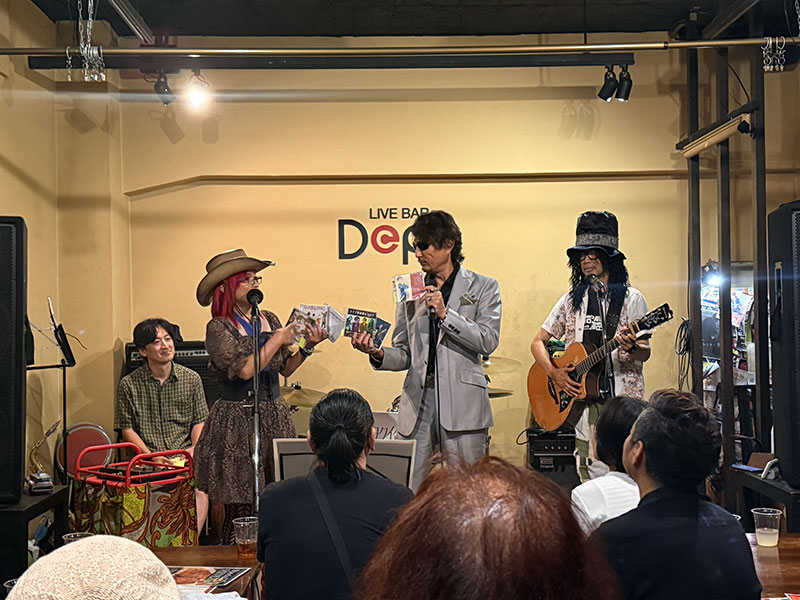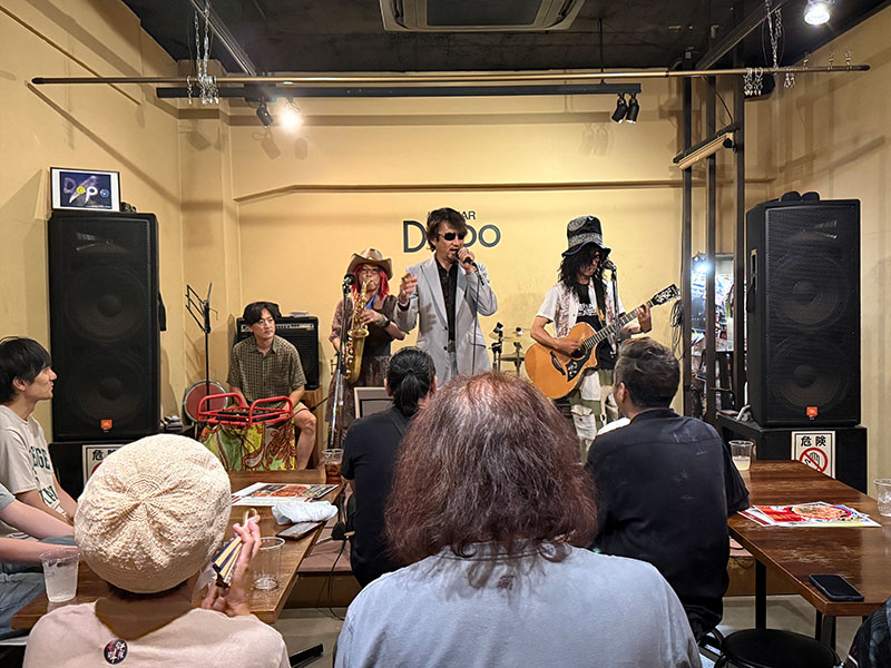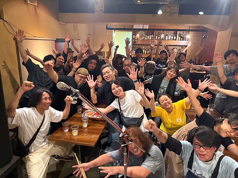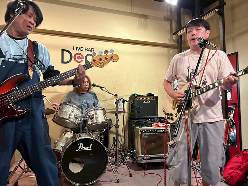2025/08/07木 高松TOONICE動画公開 ↓前 次↑ 先月のものっそ叫ビ隊、ゲストEG十河君との4人体制のモヨウ。ジャンプス40周年セッティングのおかげ?で実に3年ブリのTOONICEでした。 ![]() 「帰れない」は京都シャウターズの曲という印象でしたがワリと色んなバンドでトライしてましたね。米蔵とアコで演ったりオリジネイター快人も参加したジャンペリ、そして高松ではレアバンドKBKで恭子姉とのツインVoなんかも。んでKBK末期に参加した十河君のリクエストもあって叫ビ隊で復活した感じですがガッツリ固まってますね、パブロックや。56生誕祭告知を経てEC2曲目の「自慢したい」も。ヤマトマンの助けもあって最近定番の椅子の上行脚をTOONICEでもデキましたw 【動画はココにも】TOP(ミニ及び各バンド)・PV・叫ビ隊ページ。SOBページ。自作曲一覧。シャウターズはココ。私の歴史動画。 アルバム類。 ↓前 次↑ | |||