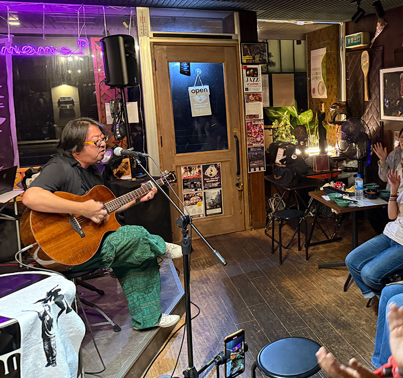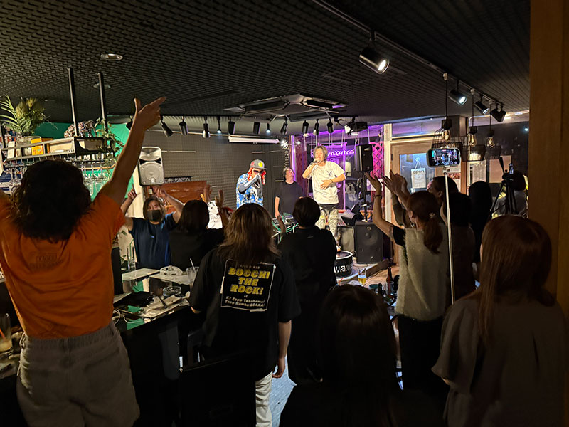 私が参加し始めてから間違いなくベストライブでした。仏生山ライブを機にアコ編成にしたのは大正解でした、とにかく 神社エール先輩の歌が届きます ※長野さんのChoも効いている 個人的にも徐々に彼の曲慣れつつあります、まだまだムズいけど。楽曲勝負のバンドやと思いますがそのハードルで投下した私作の新曲05も十分役目を果たせたのではないかと。亡くなってから盛り上がりを見せるMasu-eijiの楽曲、5月に追悼イベントを予定してますが細かいアレンジとか他の楽曲とかさらなるコーラスワークとか上昇する余地まだまだあります。マイペースで準備していきたいです。56生誕祭に開運堂をブッキングして良かった! ![]() ![]() ![]() ![]() ![]() ![]() ![]() ![]() ![]() このあたりから後方密集アラートがPA森君から、嬉しい誤算!普段は積極的に動いて解消するイベンターですが今日はMCで促す程度しかデキないですな、何せずっとステージにいますw 事前にメンバーらにも言っておくべきやったなあ、お店がやってくれたみたいです。 ![]() ARBバンド、バックドロップお披露目の時ですな。 04-チュードック