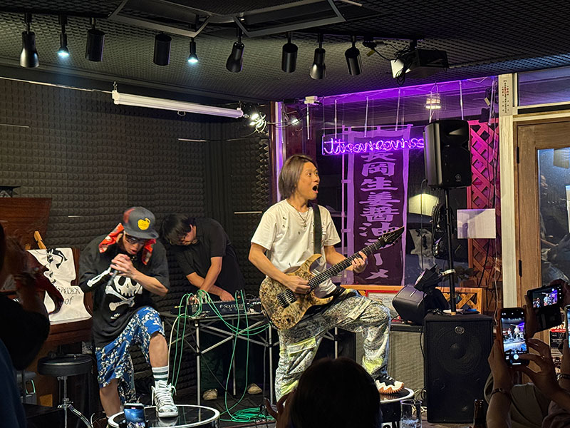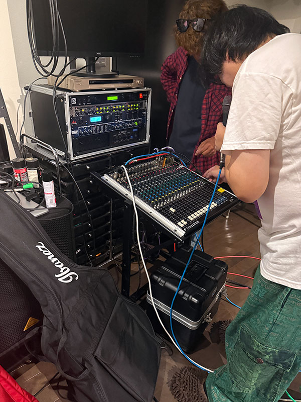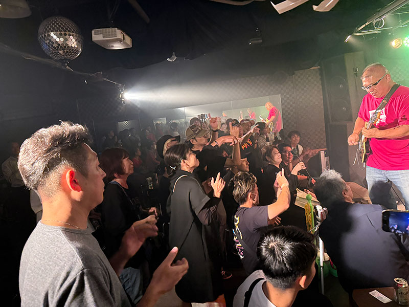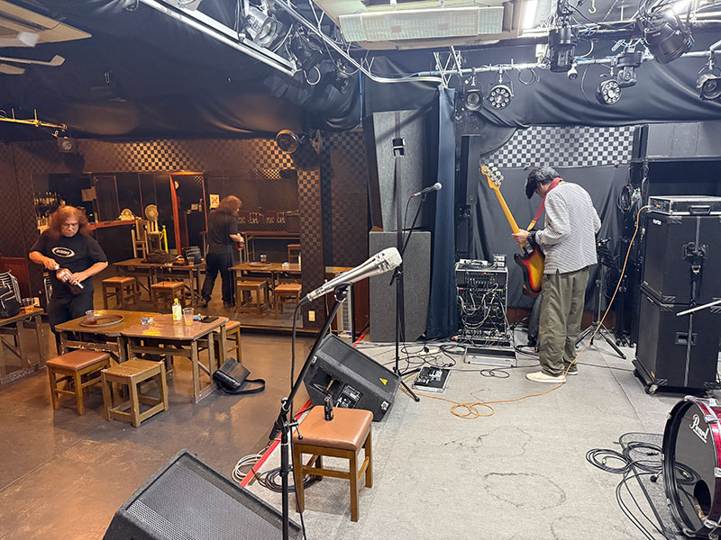 | 2025/09/07日 「たんこ56生誕祭」 at 高松ナッシュビル(◆たんこ◆・あぷまーしゅ・開運堂・チュードック・ものっそ叫ビ隊) ↓前 次↑ 56歳になりました。昨年同様生誕祭に必死なんでそれドコロではありませんねw ![]() 2年連続Bルーズ拾ってナッシュビル入り、13:30ぐらいでした。やることめちゃありまっせ! ![]() 生誕祭恒例のヘッド積み上げ、今年はこんな面子で。 ![]() ダイソーでちゃんと滑り止めシート買ってきましたが ![]() まあまあヤバそうなので白いのは右のスタックへ移動するコトにしました。 ![]() ナッシュビルさん今年も何卒ヨロシクです。 ![]() まずはチュードックのリハから。 ![]() 私が作成したリストで挑みます。そして各バンドのリハが続きいつものことながら体力消耗しました。。 ![]() 昨年は4組やから大丈夫かも!?と前飲みにいってヘロヘロになった教訓から今年は自粛です。やっさんにこれを買ってきてもらいました、塩むすび最高!バナナはライブの転換で食べよう。 ![]() ちなみにアンプ裏が着替え場所デス。 ![]() ショーが始まればずっとステージの上ですからね、ビデオカメラ及び物販はBルーズに委ねております。18:30開場となり続々お客さんが入ってくれHOTしながら時を待ちます。 ![]() 受付奥の小部屋に移動、チラ見しますがいつもより頭から入ってクレててビビりました。そしていつものカウンタから生音始めですが誰もこっちを見てないですねw 絶妙なタイミングでカツベさんが来店しドリンク交換してる間にスタートです。 01-◆たんこ◆