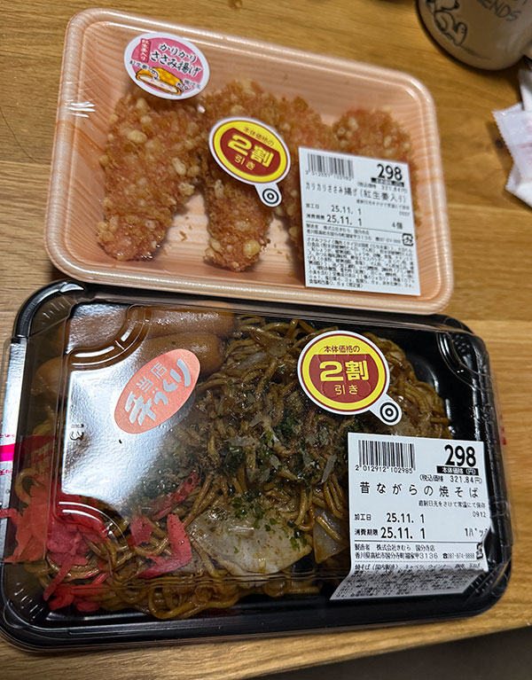 | 2025/11/09日 大人しくする ↓前 次↑ サスガに疲れました。。袋のラーメンでもぶっしょくしましょか。 ![]() ギターとトモに京都から持ち帰ったという王将ラーメンを。てか姉やん一人暮らしでこれが何袋もあったみたいやけどギリ賞味期限クリアでしたわ、たんこ家で5食ぐらい消費した。。効果的な二度寝を経て夕刻に。来来亭が一杯食べると一杯無料券くれるというのをうどん班グループLINEでキャッチし町内の店舗に行ったら案の定行列でした。中途半端な時間に行っとくべきやったか。 ![]() 余ってる豚肉と冷凍保存してる砂砂肝炒めましょう。 ![]() これまた賞味期限切れてたデリーのカシミール、遂に完食。これはまた買わないとな。 ↓前 次↑ | |