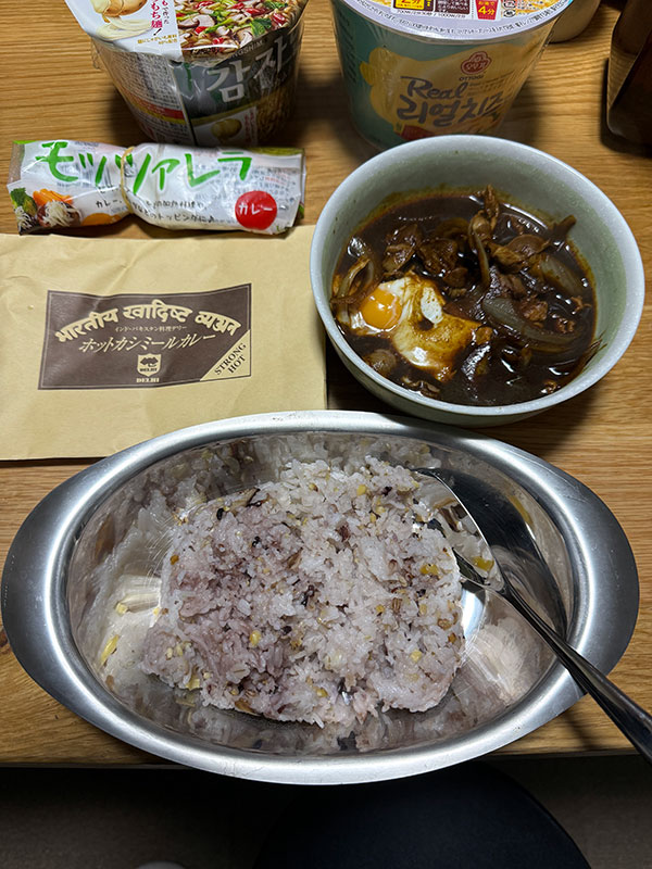 | 2025/11/01土 留守番 ↓前 次↑ 連休は鬼嫁とこたんこがまた京都実家へ。模試の女王を母校に送って帰ったら一人ですわ。 ![]() ドジャース見ながらメッシでも作るか。頂き物主体レッドカレー・ゴー。 ![]() 匂いで激詰めされるジャスミンライスもこのチャンスに炊きました。 ![]() 賞味期限ヤバ目のグリーンとデュアルタイカレーで。ぶっちゃけ自作のレッドがウマかったw ![]() そして崖っぷちを山本が何とかした!試験終わりの女王をお迎え、夕刻塾に送る帰りにキムラで夕メッシ他を仕入れました。 ![]() 弁当類は売り切れてたんだよなあ。 ![]() 揚げ物はもう一つやったかな。ぼちぼちお迎え行きますか。 ↓前 次↑ | |