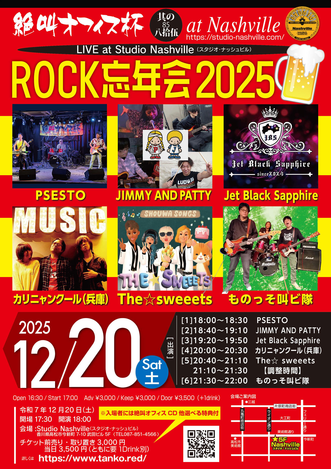 1/30金 ものっそ叫ビ隊 at 高松RIZIN ![]() ※20周年記念ワンマン 12/14日 サソリワン・ボス at 京都夜想 ※5組中3組目19:20予定 12/20土 ものっそ叫ビ隊 at 高松ナッシュビル ![]() ※6組中トリ21:30予定 |