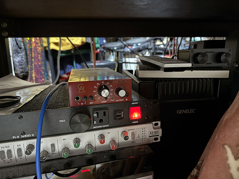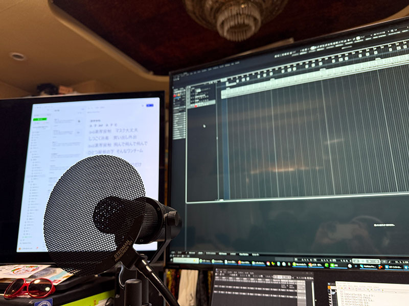 | 2025/12/10水 仮Vo入れ ↓前 次↑ 何とかプロジェクト入りしてる感じですが久々歌入れします。 ![]() REC用PCの巨大モニタ裏にずっと置いてあるSM7B久々降臨。RECに使えるダイナミックまじ便利です。 ![]() マイクプリもいつものニーヴもどきですな。1テイクで次々と仮歌入れました、マジへたくそw ふわっとMIXして叫ビ隊グループLINEに投下。Drよりも先にBass録りというのもアリ? ↓前 次↑ | |