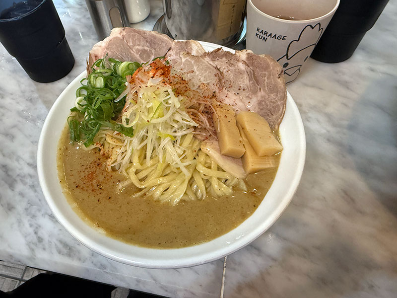 | 2025/12/21日 二日酔いにカレーラーメン ↓前 次↑ 心地良き疲れで朝はゆっくり目でした。こたんこは寝坊したみたいでアセってましたが友だちとのカラオケの約束ギリとのことで超速でトミタビルまで送りました。 ![]() 折り返しでANTI NOODLE、出来た頃に行って以来もう4年とか。 ![]() メニューが増えてる?そしてもはや天一より安い。。 ![]() 鶏煮込みカレーと親鶏飯を。 ![]() あっ、少し魚介?カレーだからかな!?にしても相変わらず食べやすいですね。 ![]() こっちは最高でした。まぜそばとかも食べてみたいなあ。帰宅後女王送りながらM-1敗者復活からの本戦を見届けました。たくろうは1本目の時点で優勝確信。 ↓前 次↑ | |