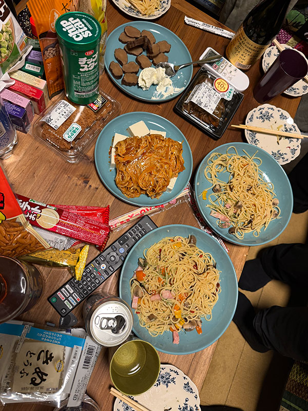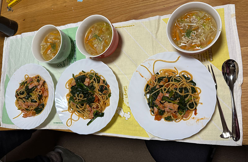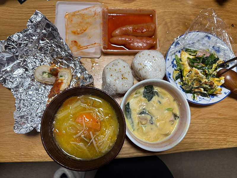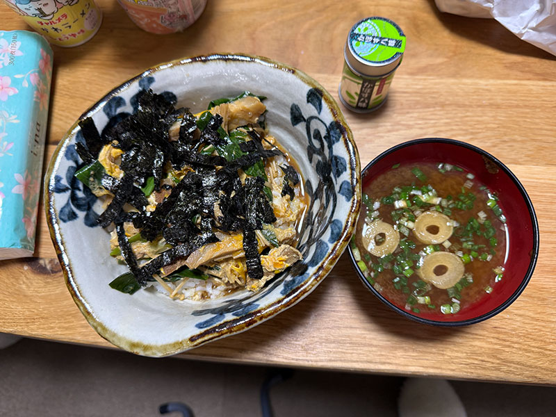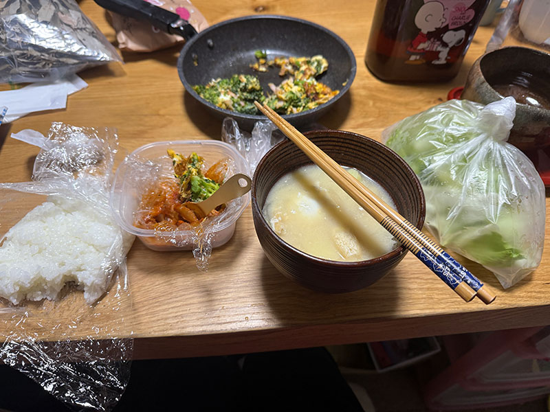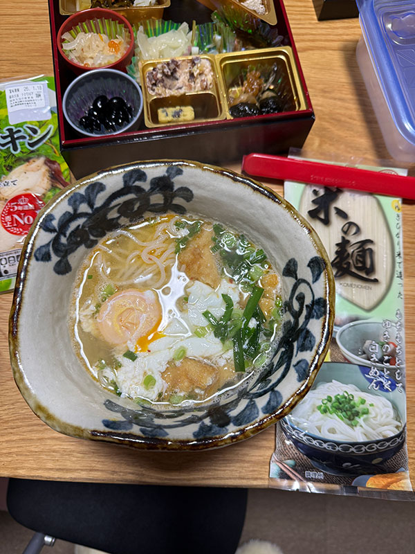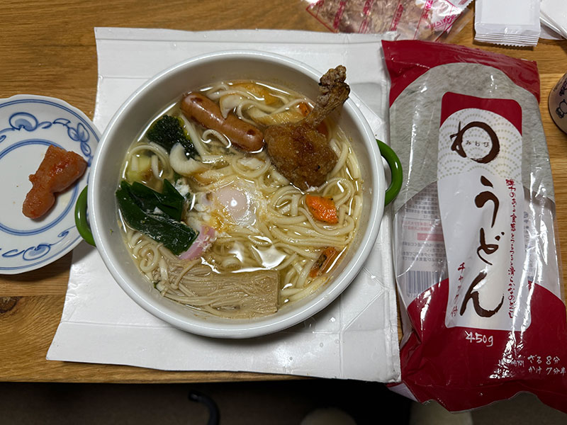 | 2026/01/03土 二日酔い初め ↓前 次↑ めでたく昼過ぎまでもがいてました。 ![]() 残り物鍋焼きうどん食えるまで復活。 ![]() 徹夜で部屋の整理しててワイより遅かったこたんこの家庭科の宿題にあやかった夕食でした。 ↓前 次↑ | ||