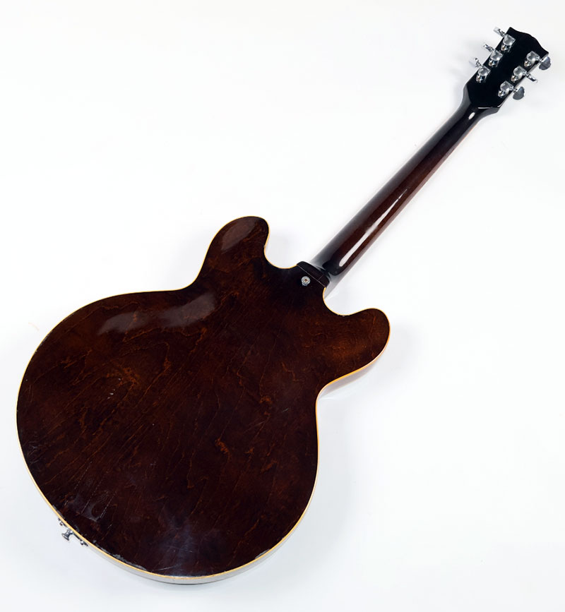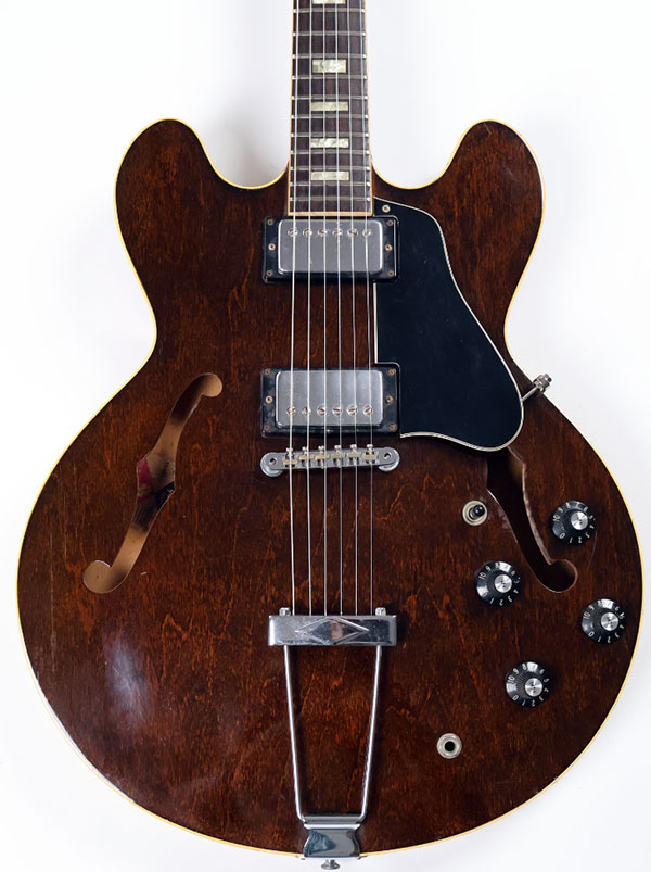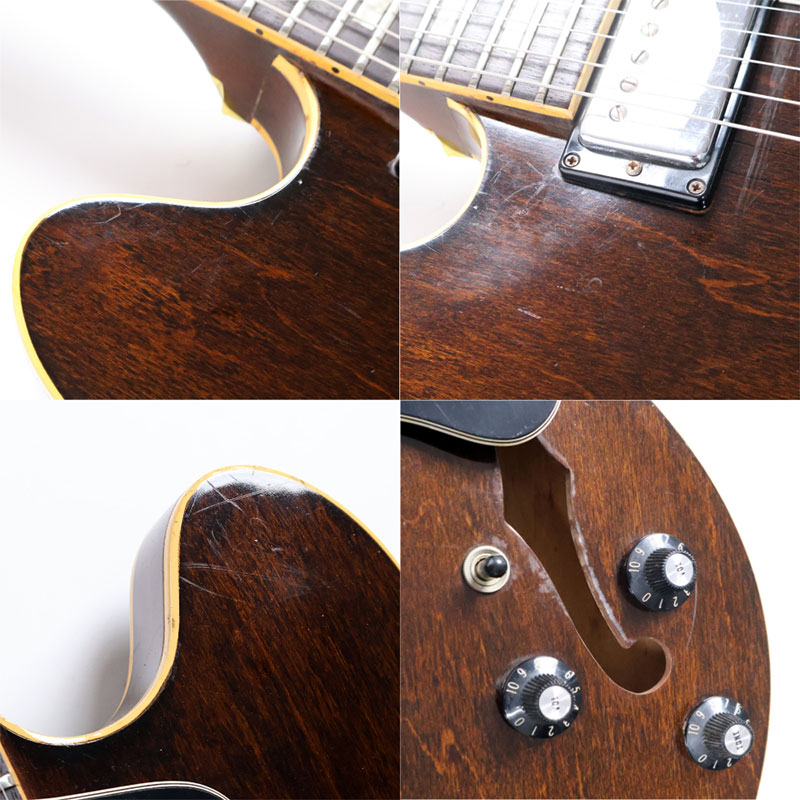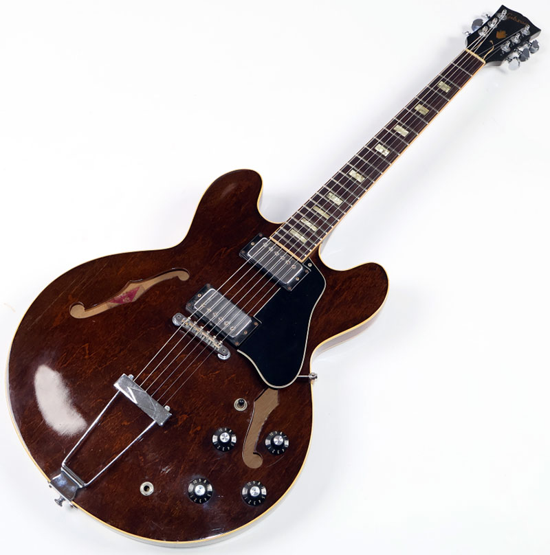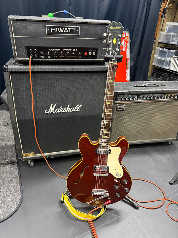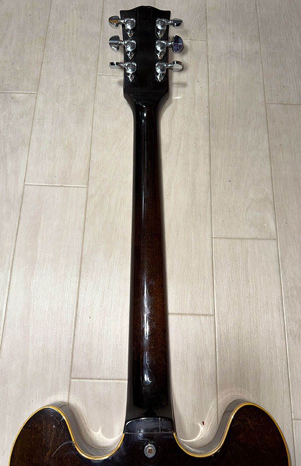 | 2026/01/16金 70年代マホネック335 ↓前 次↑ 女王送って帰ってきたらOKD君が土産持って来てくれました。 ![]() チリパウダーめちゃ楽しみ!そして工場から帰ってきたら本年1本目が届いてましたね。 ![]() にしても昨日の朝、出張に行く前にポチってもう届いてるよw ![]() 毎月のよに小物買うけどデカいのは初めてデス。 ![]() ケースは当時の物とのこと。オリジナルかな? ![]() どいちゃんw ![]() 年末の福岡旅行でこたんこと来店して試奏した以来の再会。 ![]() というコトで Gibson/'75 ES-335TD Walnut ※過渡期のマホネック ![]() マツナガさんとメイプルネック335が今熱いと盛り上がってて、どれか買おうと思ってましたがまさかのマホネックです。 ![]() 60年代ナローネックは勿論70年代前半も高騰してるので諦めてました。 ![]() そもそもこの色は自分的に無いと思ってましたが清志郎が340のウォルナット使い倒してたとムックで知って考え方改めました! ![]() 勿論小倉で試奏して決めたワケですが、その時ロッドカバー外して写真撮ったのをAIに判別してもらったりもw ![]() 手持ちの廉価版キワモノ325はシルバーですがやっぱゴールドが王道ですな。 ![]() 35年前に生まれて初めて買ったエレキが実は335でした、バイギブですが。 ![]() GIBSONではようやく初ですな。 ![]() 勿論ナローネックです、かなりの。 ![]() 75年ですがヴォリュートは控えめかな?ペグがGROVERに交換。 ![]() キズはまあこんな物でしょう。 ![]() 345も欲しいのだがw ![]() ブランコのゆるいテンション好きなんデス。 ![]() 刻印ナンバードPAFですね。そしてブリッジサドルも交換とのこと。 軽めなのは試奏した時にワカってました。 ![]() そういや335てめちゃ久々、京都時代初期のバイギブのチェリー以来35年ブリでした感慨深い。ウッドマンのワインレッドや渋谷のチェリーとか買い逃し何本か有りましたが待つ男正解やったと思いたい。貯めてた楽天Pも無くなった!ガンガン弾きましょう。 ↓前 次↑ | ||