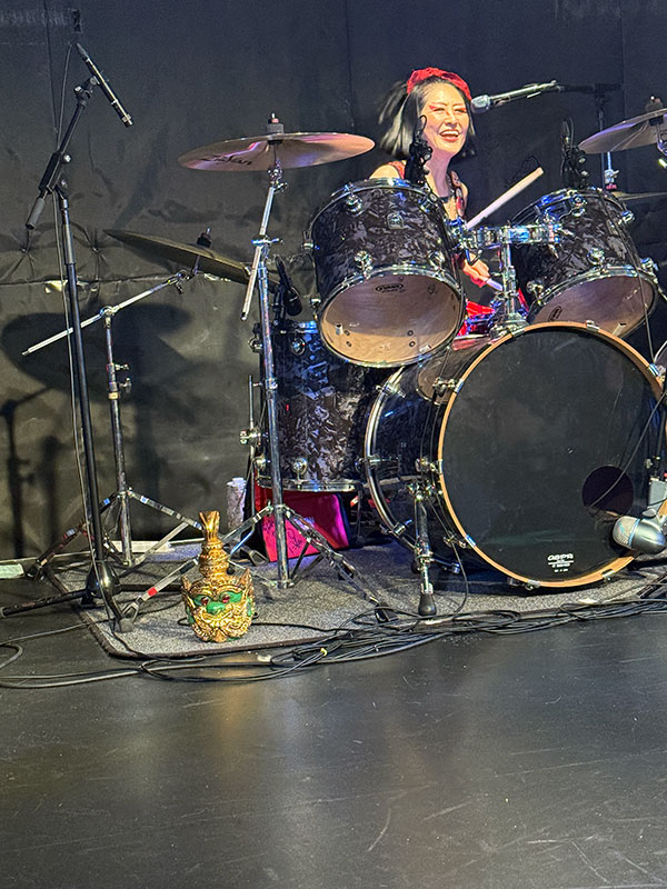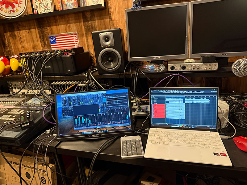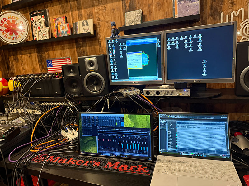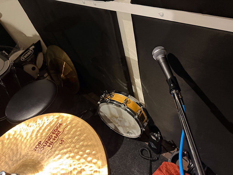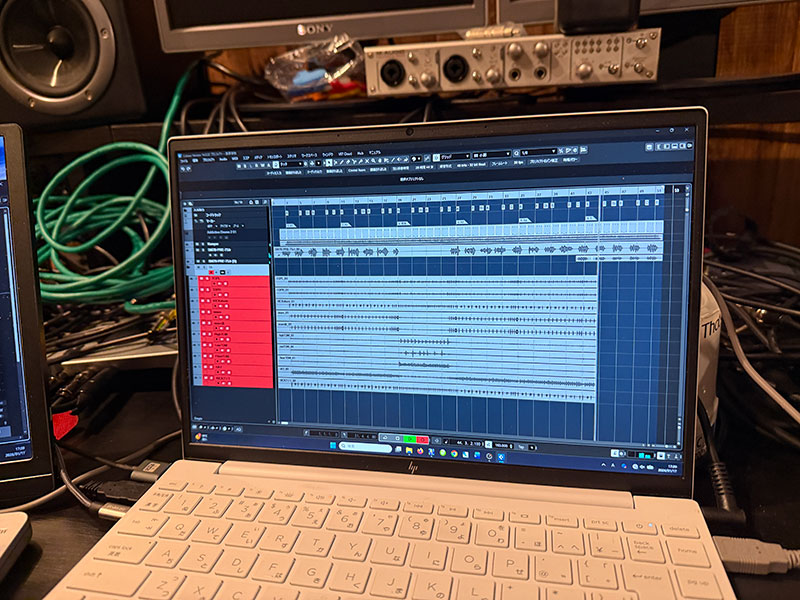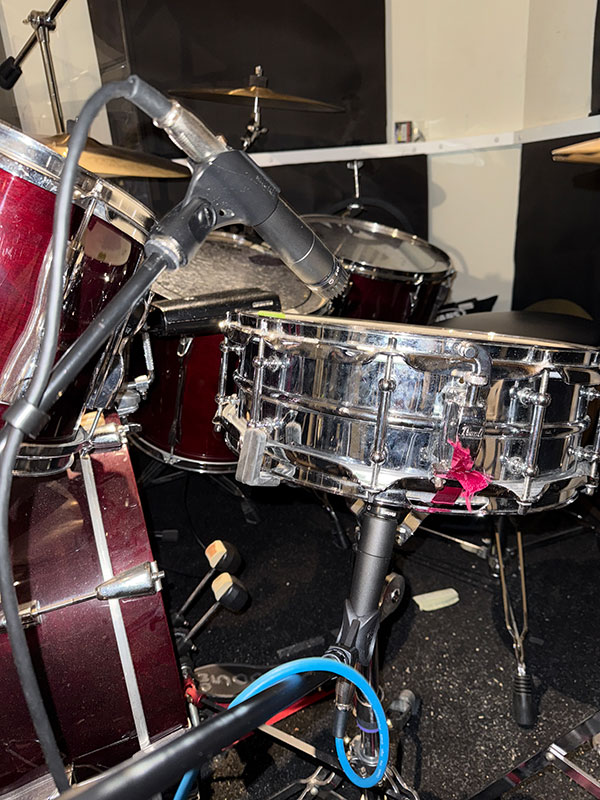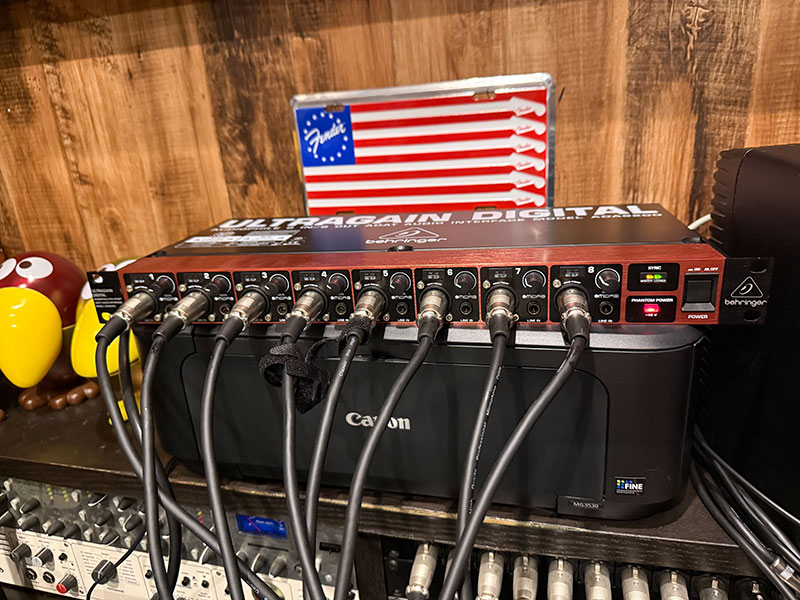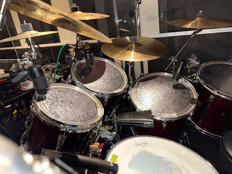 | 2026/01/14水 ものっそ叫ビ隊DrREC at 定やんスタジオ1日目 ↓前 次↑ いよいよ叫ビ隊4thアルバムのDrRECの日でありマスリーナ。 ![]() サムライズ2nd以来20ヶ月ブリですね、考えられる限り色んな物持って行きましょう。 ![]() 今回は定やんスタジオで録らせてもらいます、10時前に到着。ロボット・ミー軍団のも勿論想定しとりマス。 ![]() 昨夜預かったゴギーの剥き出しスネアごと搬入。 ![]() 何とオペレータはコントロールルームに居て良いんですな、自分でエンジニアやるようになって初ですわ感動。 ![]() ブースとかなりの数のケーブルが繋がってますね。 ![]() トミちゃんも来てくれててマイキングお任せしました。 ![]() 元々SHUREのKICKあるんですがトミちゃんが持ってきてくれたクジラ(!)も併用することに。 ![]() メインのオーバートップはコンデンサが常に設置されてますね。 ![]() スネアは57で裏からも録るとのこと、初めてデス。 ![]() ハイハットも57ですね。 ![]() タム3つはAKGですか。 ![]() 常に装着されてますね。 ![]() フロアは550とやら。 ![]() カウベルはコンとどれも拾いますが一発の場合タムが共振するので別録りかギミックで。 ![]() そしてゴギー発言用にこれも。 【RME Babyface Pro FS直】 1ch-RODE NT1A ハイハット 2ch-SENNHEISER MD421 バスドラ 【ADA8200】 1ch- オーバーTopL 2ch- オーバーTopR 3ch-SHURE バスドラ 4ch-SHURE SM57 スネア 5ch-SHURE SM57 スネア裏 6ch-AKG D440 ハイタム 7ch-AKG D440 ロータム 8ch-AKG D550 フロアタム 今まではアンビエンスにメイン急のコンデンサをステレオで配置してたけどそれの代わりにバスドラとスネアを増やしたカタチ。まあドラムセット自体囲ってるし、そもそもMIXの時にトゥーマッチのよな感じもしたのであと2口あるけどこれでやってみましょう。 ![]() なんか新鮮な景色やわ。 ![]() ADAT8ch勿論活躍デス。 ![]() てかワイはヘッドフォンする必要ないの革命的やめちゃ楽!セッティングからの「アパート」1曲撮ったHぐらい。 ![]() 遅めの昼メッシは水曜3割引のおくどさんへ。 ![]() 複数で来るのが醍醐味ですな。 ![]() パワー出た! ![]() さあ本格的にやりましょう。 ![]() 方々お疲れですぞ。 ![]() ちなみにゴギーのMCマイクをRCブースカ経由で無らしましたがワイのはRME通らずブース内のスピーカーからでした。口一つ余ってるのでブースターもう一発でもって仕込むべきでしたね。 ![]() 「おやすみのサイレン」「スタンディング・ツアー」「闘う私」「メガ人間」「ガマンする」と都合6曲録れました。最近やってる曲はサクっとイケますな。 ![]() ゴギーのリミット19時の1H前で今日はココまでとなりました。RMEとノートは持って帰りますが大半置いて行くので第二弾はサクっとイケるでしょう。 ![]() にしてもスタジオ持ってるの羨まし杉。めちゃちゃんとした音録れましたよ。 ![]() 明日出張でタイトやけどデカいモニタで少しでも整理しておきましょう。 ↓前 次↑ | ||
