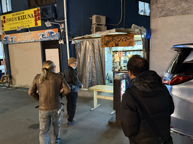 | 2026/01/23金 初サタデー難波屋サソリ大阪ツアー 1日目 大阪前乗り ↓前 次↑ 朝イチ慌ただしく準備を。 ![]() 絶叫オフィス杯含む2泊3日のツアーですな。 ![]() アンプ2台と女王の送迎もあるのでまあまあタイトな車内。 ![]() 整理せんとなあ。 ![]() 今日は学校ではなく塾に缶詰ですか。 ![]() 坂出で給油。 ![]() いきいきうどんで朝メッシ食ってから高速乗りましょう。 ![]() 麺のゆがきまではお店なんですな、なかなかレアです出汁がけはセルフでした。 ![]() 麺が死んでたけどまた来ますw ![]() カキオコは昨夜ケンミンショーに出たから自粛しました。 ![]() ということで西成のホテルにイン。2泊で4000ペソやったからKAGAから取り直しましたw ![]() 難波屋専用ホテルに無事2人チェックインしたようデス。 ![]() ということで銀仁でスタートしましょう。 ![]() 岸本さんと羊さん(!)と合流。 ![]() 嗚呼うどん食わなきゃ良かったかw ![]() なかなか新鮮な面子で次行きましょう。 ![]() マルフク行列やった。。八重勝サクっと入れそうやったのに。 ![]() そしてまさかの金曜休み。。 ![]() ということで久々酒の穴っすわ。 ![]() 大阪シチューはもうここでしか食われへんよなあ。 ![]() サクっと入れるのも良い。 ![]() そしてタクシー飛ばして四ツ橋っすわ。 ![]() 今年もヨロシクです。 ![]() ![]() ![]() マホネックを学習。 ![]() マツナガさんと合流してます。 ![]() 900万ゲキヤバ!1200万も持ちました。。 ![]() 岸本さんぜひ利用して下さいね〜。 ![]() 西成にモドリッチ。あちゃー今度は臨休。 ![]() 開いてなかった。。 ![]() 成り屋でええか。 ![]() まさかの奥の椅子席占拠。 ![]() てかお客が居なくてビックリやけど19時閉店とかw ![]() だし巻きうめ。 ![]() ビンテ話他で盛り上がる。 ![]() 麻婆豆腐が辛くてビックリ。難波屋で働いてたお姉さん、パンク好きと発覚。 ![]() てか閉店やったんですなw ![]() だもんでなんばや和デス。 ![]() ここもこの時間閉まってるコト多いがラッキー。 ![]() 西成で赤貝、くいてーな♪ ![]() ![]() やっぱここは外せないですな。 ![]() ここは一杯やった。。 ![]() 難波屋入りましょう。 ![]() かなりアトホームな店内でHOTする。。てか 羊さん飛び入り演奏 ※車にバイオリン取りに行った ![]() ![]() 後でSNSでつながったようデス。 ![]() マスター、「彼明日も出るの?」と興味津々でした。 ![]() 金曜も良いなあ。 ![]() 明日もっと盛況になりますように。 ![]() ワリとずっと弾いてるなw ![]() ライブはしごしようとなりました。 ![]() クラブウォーターへ。 ![]() トリのロシモフが始まる直前でした。 ![]() ココで見るのは初めてかな。 ![]() 東京のツアバンも見たかったが。 ![]() にしても高いステージやね。 ![]() ええ雰囲気です。 ![]() てかもう記憶が。。 ![]() 終盤? ![]() きっとテーマやろう。 ![]() まつながさんw ![]() ww ![]() 5月にまた高松に来ますよ。 ![]() マツナガさんは帰りましたが界隈に泊まる3人は八福神〆デス。 ![]() ラーメン屋もあるのか! ![]() 〆ですね。 ![]() 嗚呼ライスコロッケ。 ![]() ということで前乗りとしてはやり過ぎな初日でしたw ↓前 次↑ | ||
