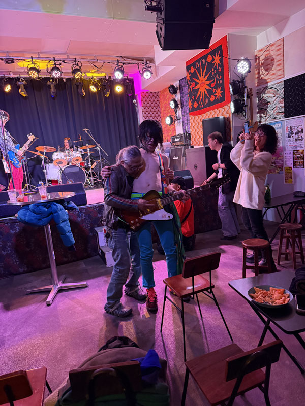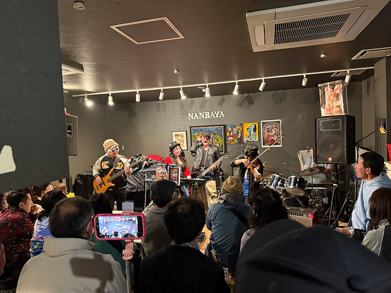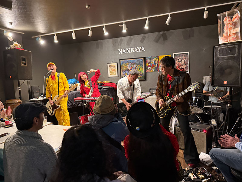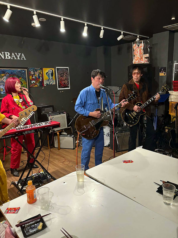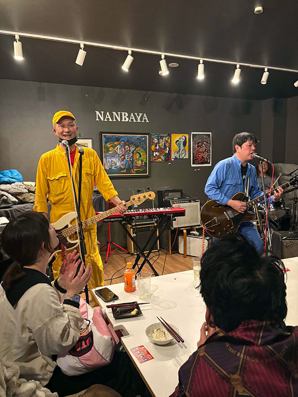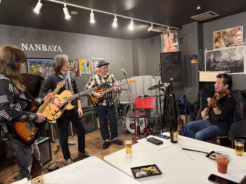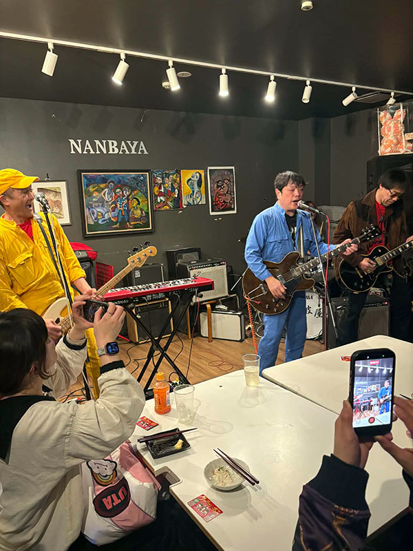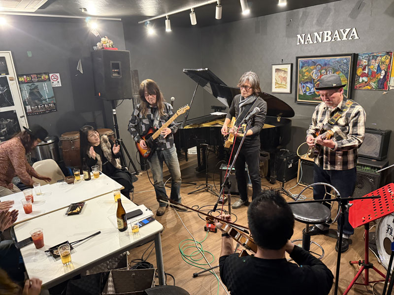 | 2026/01/24土 初サタデー難波屋サソリ大阪ツアー 2日目 サソリワン・ボス ・日光壮大 at 動物園前難波屋 ↓前 次↑ はい、必然性が感じられないぐらいの前日飲みでした。。 ![]() 10時前に待ち合わせしたコトを悔やみましたが何とか出発。 ![]() 岸本さんと羊さんと難易度の高い店を目指します。 ![]() 土日しかやってないおでん深川、10時前着で口開けに成功。 ![]() おばちゃんにテキトーに盛ってもらいました。 ![]() 甘めで予想以上に旨い!使い方マスターしたので次から気楽に来よう。 ![]() スタンド八トリもデビューしてもらいましょう。 ![]() 後で気づいたけどオアシスセット1100ペソじゃなくモーニング500ペソ行くべきやった?てかメニュー落ちした!? ![]() ただオアシスのが豪華なんですな。 ![]() しかも3人で内容が違っててシェアして最高みたいな。 ![]() 岸本さんは翌日も行くことに。。 ![]() 岩田屋酒店実に9年ブリです。 ![]() 前は椅子もあった気もするが。。 ![]() 何かキレイになってる?自分で取るのええわあ。 ![]() めちゃええ感じですね。 ![]() てか夜に何があるのか皆忘れてますw ![]() 連日のニンニク丸揚げw ![]() 何だ、もっと来ておけば良かった。 ![]() となりに権兵衛あれば最高なんですがね。 ![]() アー写撮りたい! ![]() 元祖ホルモン テツで〆ましょう。岸本さんオススメでネラってましたが移転後ようやく来れました。 ![]() 基本マルフクと同系統ですが高級メニューもありマス。 ![]() そして中がスタンドで外のテーブル席が椅子付きというシステムに唸ります。 ![]() 800ペソの上タン東京の気の利いた焼きとん屋にしか置いてないブツで大いにアリ。 ![]() ええぞ。 ![]() 煮込みがカレーなのも前述と同じ、最高! ![]() ベースの安いホルモン焼きも十分で、昨日からずっと行列のマルフクもう要らんかもね。 ![]() ここもほぼ満杯でしたがね。 ![]() さあホテルに帰って休みますか。 ![]() そして夕刻?ライブモードであります。 ![]() ちょこっとだけ顔出しました。ジョガー先輩らの爆笑トークw ![]() 快人もグランマ号に衝撃を受けてましたね。。 ![]() 16:30入りです。1Hで4組リハやろうというのがそもそも無謀でしたね。。 ![]() 完全に私のミスですが17:30開演のトコロ17:45でもリハやってますw そもそも入場無料なんでお客さんには入ってもらいレアな?風景も見てもらいました。席は埋まり入り口はスタンディング状態、都合30分ほど押してスタートです。 01-みなみちゃん(OA) ![]() ![]() ![]() このところずっと演ってもらってますがこんなに埋まってる前で演らせてあげられ感無量。いつもより元気に攻めてましたね。 ![]() ニコバンのスタンバイ、何とか場所確保。ここは良いわw ![]() 大活躍予定の井上さんのシンセの後ろにプリンストン2を置き、間に何とかミニボードの場所を確保しました。 ![]() タブレットホルダーいらなかったな! 02-日光壮大(香川) ![]() ![]() ![]() ![]() 限られたスペースの中で日光が躍動してましたね。この羽根を大阪で見せれて良かったデス。何気に '75 ES-335TD WalnutとMOSFET Overdriveのデビューでもありました、確認もデキた! 03-nutts ![]() ![]() ![]() ![]() ![]() ギターの方が来れなくなったり途中お店の鍵盤の音が出なくなったりして上モノがシュークリーム井上さんから借りたKEY(大感謝)だけになりましたが上手いんで問題なかったですね。ちなみにお店の生ピアノも鍵が2つ切れてるそうですw 澤野さんのアコウクレレええ感じでした、きっとジョガーも買うでしょう。 04-The☆ sweeets(香川) ![]() ![]() ![]() ![]() ![]() ![]() ![]() ![]() ![]() もはやロックンローラーの井上さん圧巻の大阪デビュー。日光バンドと合わせ界隈・お店では初物というのが意義ありと思っとります。岸本さんはチュードックのニューワール堂以来7年ブリですかね! ![]() ココ何回か、難波屋て広いなあと思ってたのから脱却! ![]() 入り口の方まで届くように演りましょう。 05-サソリワン・ボス