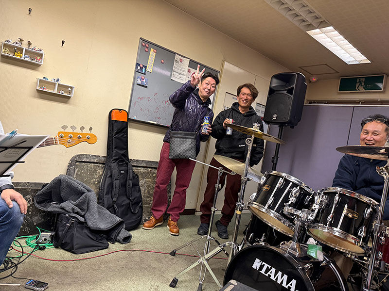 | 2026/01/20火 叫ビ隊ナッシュビルでスタジオ練習 ↓前 次↑ Web会議というのに初参加しました。 ![]() いつも日中の絶叫オフィスではちゃんちゃんこなんですがw、代わりに作業着羽織りましたよ。 ![]() これは便利やな、福山まで行かなくて良いのか!?夜はジャンパーでナッシュビルへ。 ![]() 満を持して75マホネック335を。予想通りのTONE! ![]() 引き続きワンマンの練習、今日は十河君も参加です。 ![]() いつもの4曲に加え「闘う私」も参加してもらいました。KBK時代に演ってたので叫ビ隊メンバーより曲的には先輩でしたね。先のRECも見越して意義ある練習となりました。3人の部分も含め久々の3Hでヘロヘロになりましたわw ↓前 次↑ | ||