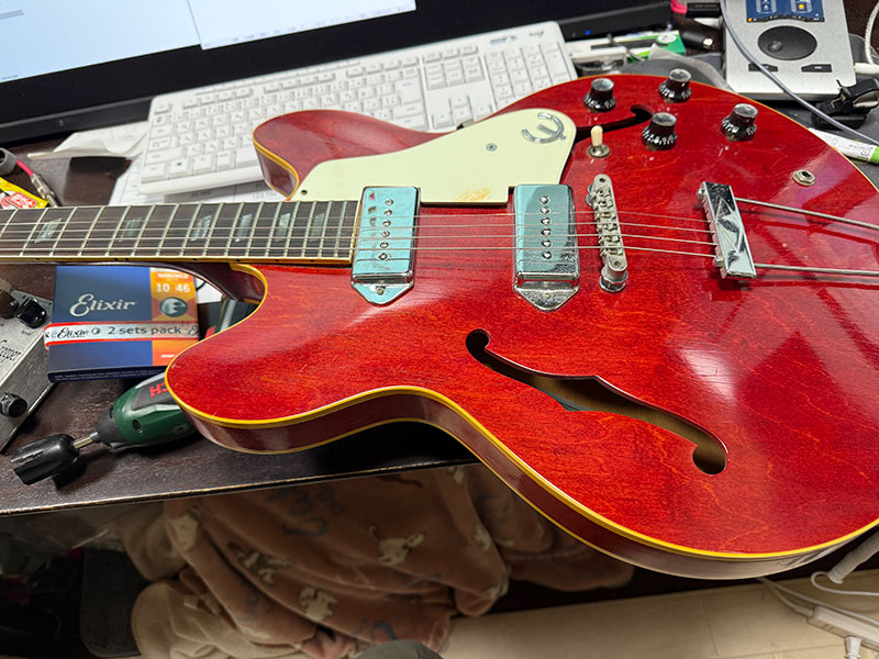 | 2026/02/13金 ギター6本使うタメに ↓前 次↑ 納得の二日酔い夢の中でしたが女王に叩き起こされ高松駅まで送りました。倉敷まで友達とショッピングに行くんだとか。 ![]() もう送迎後うどんなんて無いのかなあと思ってたのでこのチャンスに突撃しましょう。 ![]() 界隈随一の人気店うどんバカ一代も平日の9時過ぎなら行列も無しでありマス。 ![]() 釜かけ出汁がヤバい。。OKD君いわく爆量の昆布から取ってるからだとか。釜バターなんて食べてる場合ちゃいまっせ。調べたら10年ブリとかでした、また来よう。。 ![]() 足場建設中ですな、音にビビりつつ小刻みに落ちることにしましょう。 ![]() 寝室に置いてあるギターをこたんこ部屋に移動。まあそのまま進呈でも良いのですがw そして空いたスタンドをREC部屋に。5本置けるやつですがそれを駆使して日曜のニコバンの時にギターを沢山使おうということです。 ブラック:EPIPHONE '64WILSHIRE パープル:Fender JAPAN JM-JM レッド:EPIPHONE '67CASINO ホワイト:GIBSON '78 SG Custom White ゴールド:GIBSON SGsp Orange Sparkle ブルー:GRETSCH '57 BLUE BIRD ![]() 都合6本です、1本置けないが何とかしましょう。50生誕祭の時に7本使いましたが今回はステージに10人立つので難易度高いんです。これだけスタンドがコンパクトなら何とかならないかでありマス、明日のゲネで確認しましょう。 ![]() 22時に女王お迎え。小刻みにナッシュに搬入もしておりマス。 ![]() そういや白SGカスタム、年末の絶叫オフィス杯で1弦切れたままやった。この機会に張りましょう、やる事色々ありマスな。 ↓前 次↑ | |||