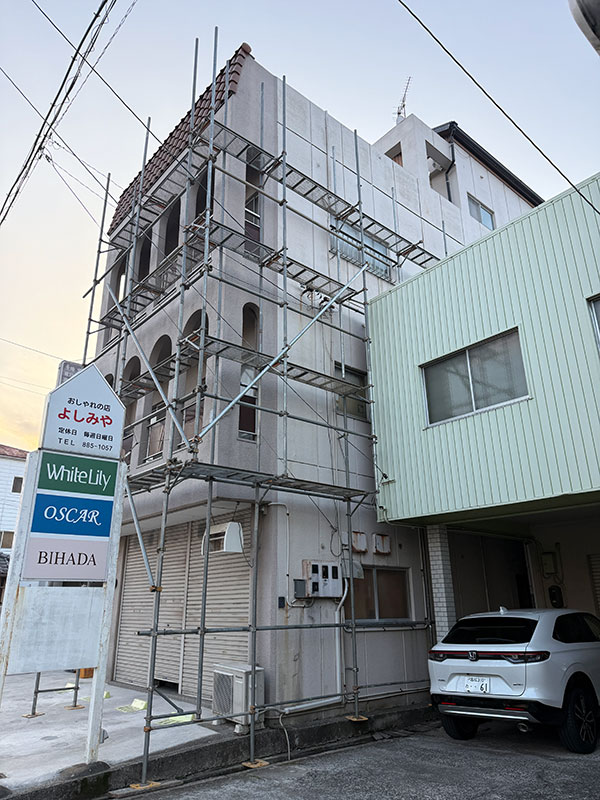 | 2026/02/12木 近場で飲む ↓前 次↑ 今日から絶叫オフィス外壁塗装プロジェクトがスタートします。私が家を離れてる時に一度やったようなのですが30年近く経過してヤバいので。。 ![]() まずは足場を構築するとのこと。兄貴が見守るナカ開始。 ![]() 車は動かしました。 ![]() となりのそろばん道場そして幼馴染のうどん屋跡にお願いし置かせてもらうコトに、あざす。 ![]() ワリと音がする時もあり、昨夜のゲネで寝不足なんですが昼寝のタイミングがムズいですw ![]() まずは4Fの方の全面からなんですかね。 ![]() ![]() なるほどなあ。 ![]() 裏庭も。 ![]() となりの家も着手。トミちゃんのマネしてイチジクの木でも植えようかな。 ![]() 裏のは農道?やったみたいでダイゴ君が許可を取りに行ってました。 ![]() そしてブラックステージ用に64ウィルシャイヤーを久々出してきて弾いてたら1弦切れたので張り替えました。マグナムロックなんで楽ちん。 ![]() RECも進めます、「俺はセンターブロック無し」。せっかくなんで先の黒いので録りましたがめちゃエエ音。 ![]() 「復活の唄」も。バンドでも久しく演ってないのでグループLINEにに送ったらゴギーが 「こんな難しい事してたんや」 ※ホンマそれ とビビってました。 ![]() トミちゃん拾って地元の伊佐魚へ20時前に。 ![]() 昨年夏は鉄っちゃんと3人で飲みましたが今日は堀上君にメンバーチェンジです。 ![]() 小上がりを昨日TELしてゲットしております。 ![]() 堀上君も歩いて来れますからね。 ![]() 刺盛り3人前ド迫力。これ東京とかならいくらするんだろう。。 ![]() うまいうまい。某バンドのミーティングをセッティングしたカタチですが高校生バンドの活動の場所の話題でも盛り上がります。 ![]() カキフライ食えた! ![]() 勿論ボトルも。中身は一緒?らしいですがラベルは変わってましたね。 ![]() そしていつものスナックに移動でありました。堀上君、中がPOPでビックリしてましたw そらそうだよなあ。 ![]() 平日に25時エンドという素晴らしさでした。また近場で飲みましょう! ↓前 次↑ | |||