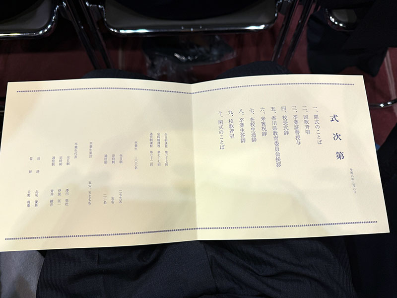 | 2026/03/06金 女王高校卒業式〜ロボット・ミー軍団練習 ↓前 次↑ 朝、久々スーツ着て行きましょう。 ![]() お馴染みの地下駐車場。 ![]() ココに入るのも基本最後になるんだろうなあ。 ![]() ということで女王の卒業式でございます。 ![]() 厳しい受験を経て合格し入学してから3年あっという間でした。私がいた頃はなかった校舎もおかげで少し思い入れが。。 ![]() 体育館での卒業式は私の時が初年度でした、38年も経てば立派なビンテージですな。 ![]() 神社エール先輩と同級生の校長にもお世話になりました。 ![]() ![]() ![]() 自分の時はほぼ?浪人が決まっててヘンテコな心境だったなあ。 ![]() にしても親として戻ってこれるとは、感謝しかありません。 ![]() 母校はトイレの注意書きもキテます。 ![]() クラス最後のホームルーム。 ![]() 女王のクラスは異例というか早慶が指定校で5人とか受かってて学年の枠をほぼ独占してるらしく、余力のある有志ですばらしい卒業動画を作ってました。 ![]() 式では割愛気味だった卒業証書を1人ずつ渡します。 ![]() そして担任・副担任・親への感謝の気持ちと思い出を語る感じでした。 ![]() 女王はサクっと日々の送迎の礼を言うぐらいで涙も出ませんでしたw てか自転車登録してるのに3年間で10日ぐらいしか使わなかったとカミングアウトしてヤヤ受けでした。数えてたのね、サスガワイのムスメ。。そして全員で実に2Hのボリュームで腰破壊でしたw ![]() 18の会サカキ君の娘さんや保育園の時の同級生らが同じクラスでしたね。 ![]() 野球部の集いは遠慮させてもらい3年間朝食でお世話になったさか枝へ。13時過ぎたら天ぷらほとんど無いのね。 ![]() まあまた日赤に来た時によるとは思いますが区切りですな。 ![]() いつもは駐めないムズいトコもクイっと行きましたよ。 ![]() また自分のと見比べてみよう。ただロボトミーの練習が迫ってます。 ![]() 16時に定やんスタジオへ。 ![]() 前回着手したテーマ曲を反復。 ![]() コーラスワークも試行錯誤しました。 ![]() んしても335とZ.Vexやとなかなか使えるトーンやな。 ![]() 既存の曲もええ感じの反復期になってますね。 ![]() 帰宅して家族で麻十。 ![]() 女王はサーモン刺身とこれを迷わずオーダー。 ![]() いつのまにか?牡蠣フライが好物になってた、大人になったなあ。女王2こたんこ2ワイ1のパワーバランス。 ![]() 南部飲み会でおぼえたメニュー、大好評でした。 ![]() さあ明日から東京や。 ↓前 次↑ | |