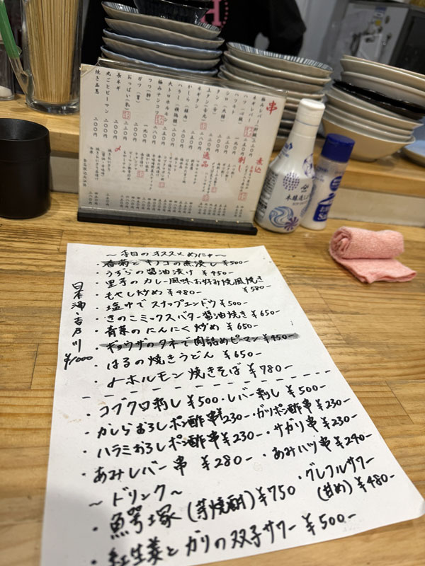 | 2026/03/10火 ワイヤレスイヤホン導入東京出張 4日目 人形町渋谷王子 ↓前 次↑ むぅ、雨か。 ![]() 傘借りて出発。行列マシにならんかのう。 ![]() 日比谷線で人形町、嗚呼やっぱ並んでる。 ![]() おが和11:02着。ジョガーの誕生日を祝ってチョイス。 ![]() 後ろに接続したお姉さん2人から「これ一巡目で入れるんですかね?」と聞かれワイレベルでも不明な並び具合でした。にしても寒い、5分でも長く感じるが1Hとかならかなりキツい。。そして11:25開店、どうやら入れそうデス。そして お姉さん2人はアウト ※ワイまででした と嗚呼温かい店内ありがたい、入ったとこの門に着席です。時間かかりますと言われたけどこれならいつまでも待てます。 ![]() プラス20分でお姉さんらも入店、同じタイミングでワイのも来ました。 ![]() 焼鳥丼の肉増しです。 ![]() タレは言うほど甘く無く絶妙な塩梅。肉自体も最高。最近通ってる半助の焼鳥丼は串あったかなあ? ![]() 12時に来たら相当ヤバいでしょうな、雨でこれなんで。行列がハードル高いですがテイクアウトもあるようで次々と入って行ってたのでまたトライしたいデス。 ![]() 15時までのエコカードを駆使して渋谷まで。 ![]() 昨年8月に78SGカスタム買いましたね、店員さんに挨拶を。 ![]() この店イキオイあるよなあ。 ![]() 悩ましい、まあまあ弾いて後に。 ![]() イシバシは冷やかしたがイケベは寄らず。 ![]() ホテルに戻ってちょい落ち。 ![]() 夕刻王子へ。 ![]() トシゾウさんとこの街で飲んでから7年も経つのか、元気にしてるのかなあ。 ![]() あっ、良さげな店発見。 ![]() ぼちぼち歩きます。 ![]() 宝泉、酒場放浪記・コの字酒場・ケンコバの番組とかちょくちょく見かけたビンテージ。 ![]() カツヲ氏と合流デス。 ![]() 名物やわりめ、戻して柔らかくしたあたりめなんですが最高ですこれ色んな店でやって欲しい。 ![]() カツヲ氏遂にマカオで大勝ちとな! ![]() にしても血が騒ぐな。丁寧な2代目と3代目候補の甥も登場。 ![]() ハムカツは至って普通。 ![]() TVではなく落語家師匠との写真を自慢した名物お母さんに会いにまた来たい。 ![]() 新しくなった山田屋に恐る恐る入店。 ![]() 何かめちゃ狭くなってる!?天井ももっと高かったよな。。ビルに建て替えたんだよなあ。 ![]() テーブルや熟れた値段のメニューとか新店として考えたらアリなのかもしれんが。 ![]() トシゾウさんと来た時にいた先輩方元気にされてるんでしょうか。 ![]() 発見したもつ焼き はるで〆ますか。 ![]() 兄ちゃん2人でやってて意表つかれるの巻。 ![]() 煮込みちょうど良い感じ。 ![]() もつ焼き現代的でちゃんとしてる。 ![]() あみハツ串も実に良かった。 ![]() なんこつがふわふわという嬉しい誤算 ![]() ただ梅割りが多めを超越して甘くてずっこけたw 兄ちゃん飲んだことないなw ![]() これはOUTなんやけどねw ![]() また飲もう! ![]() つい出来心で金町まで。 ![]() 22時で行列及びいつぞやと同じ食券先買いシステムと発覚、我に返って回避するコトに成功。 ![]() 23時就寝 ↓前 次↑ | |