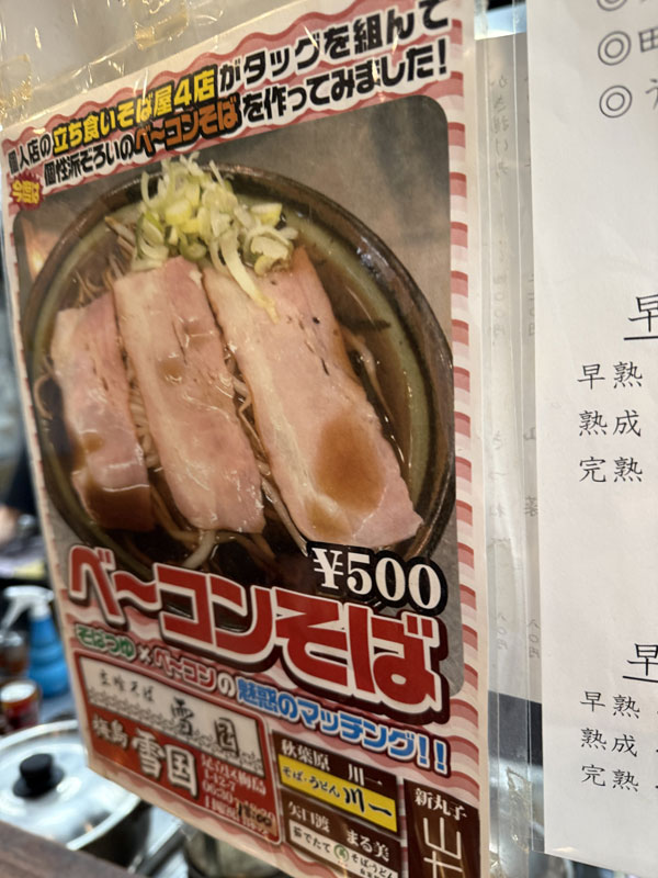 | 2026/03/11水 ワイヤレスイヤホン導入東京出張 5日目 早稲田池袋新富町 ↓前 次↑ 早朝そばを決める日デス。 ![]() 北千住泊ならではの選択肢を。 ![]() 東武スカイツリーライン、以前間違って乗ってしまったコトありましたが初めて目的をもってw ![]() 梅島駅勿論初めてデス。 ![]() 雪国6:30からやってマス。 ![]() 6:50いざ。 ![]() なるほど天ぷらは小ぶりやな。 ![]() だしも返しもこの時間で完熟か、おもろい! ![]() 塚っちゃんので見たベーコンそばいかざるをえない。 ![]() かなり迷ってなす天を追加しました。麺は3種の中から藪を。 ![]() あまりベーコンの感じはしないけど出汁はしみじみウマしですな。次回天ぷら2個かカレーかな。 ![]() 折り返しの電車内ごった返してたな。。20分早く、開店時がベターでしょう。 ![]() 10時までホテルで待機。 ![]() 早稲田へ。 ![]() 久々のドバイ案件、作戦会議であります。 ![]() 色々と学習。海路が封鎖されてて非常に厳しいですが待つのみ祈るのみ。 ![]() さらなるチャンスも発覚。また来ます。 ![]() 久々荒川線。 ![]() いつもの手前で降りるも有名洋食屋は行列。 ![]() ここもか、13:30やで。。 ![]() 結構歩いたな、永祥生煎館入れました。 ![]() 6個と青島ビールという潔さ。 ![]() 1460ペソと昼飯としてはあれだが飽きるぐらい堪能。 ![]() 夜に飲みのハシゴの後の〆がやっぱ良いかな。 ![]() 後にする頃は行列でした、タイミング良かったのね。 ![]() オモローすげえな。一旦ホテルに戻りました。 ![]() 18時に築地へ。 ![]() アーライツ法律事務所久々です。 ![]() ということで島さんと繰り出します。 ![]() チェックしてた店へ。 ![]() あちゃー満席。予約すべきでした。。 ![]() ということで島さん馴染の店、RODO KICHIへ。 ![]() ハッピアワーギリ一杯イケそう。 ![]() イタリアンか、自分ではなかなか来ないが大好物デス。 ![]() 突き出しうめ! ![]() ごぼうのこれも渋かった。 ![]() うまいわ。 ![]() 牡蠣入りのこれも最高。 ![]() 確定申告の相談他話すことが盛り沢山でワインもぐびぐびいってしまいます。 ![]() 炭火焼とか美味いに決まってるやん。 ![]() 何か勇気出ました。秋のNNR四国ツアーの話も。 ![]() 激旨パスタは半人前ずつ取り分けてくれました。 ![]() めずらしくご馳走し一財産失いましたが全く悔いはありません。また来よう。 ![]() 絶景帰路。 ![]() 前のマンションは取り壊しで退去になったようですがその費用が父実家の数百倍。。ということで島さんの部屋で色んなバンドの音源チェックしました。THE NEWS熱い。。 ![]() メトロ24H券を使うために大いに歩きました。 ↓前 次↑ | |