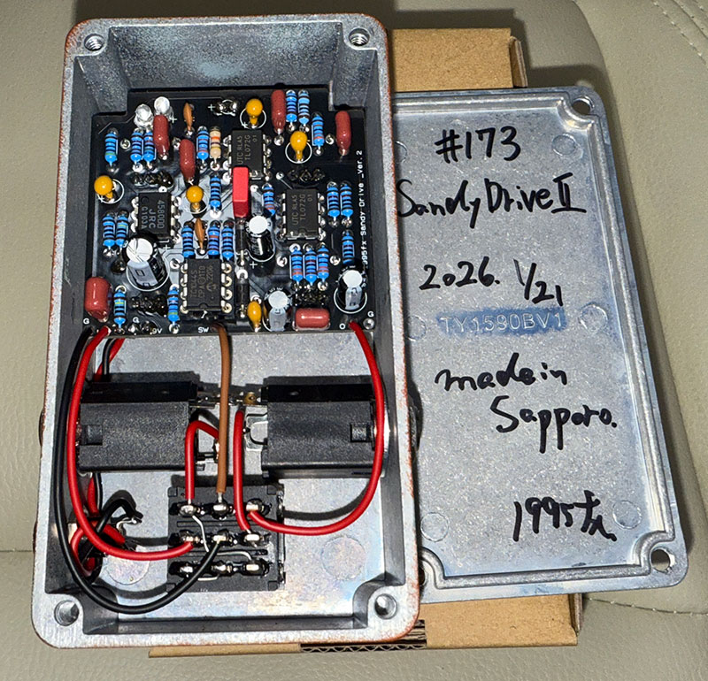 | 2026/03/13金 Dist2インスパイア? ↓前 次↑ 日常生活に戻ってマス。 ![]() 川崎から先に帰ってるダイゴ君も勿論外壁塗装やってくれてます。 ![]() どんどんオレンジ色になっとりますよ。昼メッシ、トミちゃん拾って行こうとなりました。 ![]() 更に先へ、はな庄うどんでカレーうどん食べようかなと。 ![]() あっ、しっぽくまだやってるのか。これはダイゴ君に食わせようw ![]() チビ太のおでんみたいな天ぷらもおにぎりも合うはず。 ![]() カレーうどんは至って普通で出汁がないタイプでしたね。帰って皆それぞれのタクスこなしましょう。そういや東京言ってる間にポチったペダル届いてたな。 1995fx/Sandy Drive II ※MXR DISTORTIONIIインスパイア ぶっちゃけペダルにもペダルメーカーにも興味無くなってるんですが、Dist2オマージュとなると話は別デス。Dist+のはあったし本家すらリイシューしない可哀想な名機、よくぞやってくれました。 ![]() にしてもなぜ黄色にしなかったのか!? ![]() 見た目は色々と最高デス。 ![]() ノブや高そうな塗装も良い。 ![]() 何ならハコまでかっこエエ。 ![]() 受注生産で数カ月待ちでもポチるつもりやったけどイシバシに在庫発生しそっちにしました。 ![]() 札幌発の国産ブランドのようデス。 ![]() めちゃエエな。 ![]() 勿論今年初のペダルです。 ![]() 中もめちゃちゃんとしてる、サスガ国産。 ![]() さて現代的がどの程度か。ちなみにDist2は3台持っててメインボードとサブボードにずっと置かれてます。 ![]() おそらく売却はしないしステッカーはボードに貼るかね。 ![]() 何でも高騰してるがこれは安いレンジでしょう。さて鳴らしてみるか。 ![]() 本家に比べて圧倒的にVoが上がるね、想定内。 ![]() こいつよりかはミドルある。 ![]() ただ本家ほどじゃないかな。抜け感と音量は勝ってて2つのボードで後段ブースターと併用してるのに近いかもしれない。 ![]() Z.Vexもミドルは出るが音が硬いかな。そう、ミニボードで使えないかなというネラいでしたがコレクションとしても十分です。爆音でチェックしたいですね、手持ちのFender系アンプで。 ![]() 色々やってるうちにベリンガーのケーブルチェッカーも出てきて嬉しい一日でした。 ↓前 次↑ | |