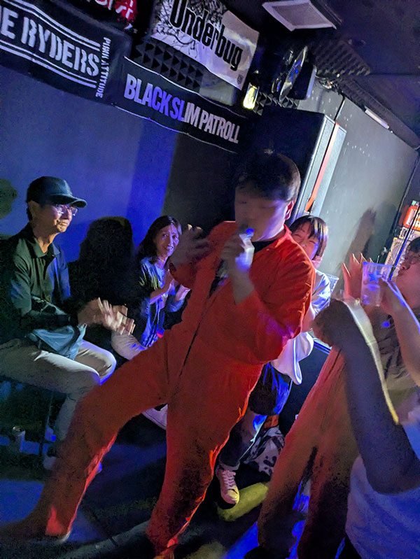 | 2025/09/20土 ルモマンへ ↓前 次↑ 17:30に半助へ。前に定やんと来て最高やったので直前にTELし2席確保。 ![]() 17:30しまやんと合流。 ![]() そそられる面々。 ![]() しまやんと飲むのも久々かな? ![]() マナベ君の事や地元の事等を。 ![]() 魅惑の肝。 ![]() 剛力皮。 ![]() 胡椒な身の塩。 ![]() 酎ハイもジョッキ凍ってる。 ![]() たれも良いんだよなあ、腹パンデス。 ![]() 一人南下。ここ神社エール先輩が常連やったハズ、結局一緒に行けなかったなあ。マナベ君と西成や京橋飲みもしたかったよなあ。。 ![]() ということでルモマンです。ワンダールーフがイベントやってるので見に来ました。 ![]() 何とヴィニーの弾き語りがOA?で1Hもw ![]() 彼単独でこの店に出たこともあるようです。 ![]() 気がつけば奥に。 ![]() トミちゃんの弾き語りも! ![]() こっちのがちゃんとしてるやんw ![]() バンドで演る曲も聴けました。 ![]() そしてワンダールーフです。 ![]() 今日は弾き語りとオケバックでDrやAMPは無しですが色々と参考になりマス。 ![]() 奥のVIP席?を物販や出演者待機スペースにするかね。 ![]() 全国から来てるFANと盛り上がります。 ![]() 楽屋的なのもあると発覚。 ![]() ちなみにそのBOX席には久々の先輩がw ワイのイベントにも来て欲しい。。 ![]() ヴィニーの弾き語りと同じ尺のようですw ![]() そろそろ佳境か。 ![]() 配信もしてるしお客さんもがんが撮っている。 ![]() ドリンク・フードはいつものお礼で振る舞われるらしくめちゃ飲ませてくれてヘロヘロですw ![]() 堀家君てギター弾けるんや。てかこんな顔なんや!w ![]() お疲れ様でした。めちゃこの店がワカった! ![]() この後皆でカラオケBOX行くそうです。 ![]() 雨がヤバくなりそうというコトで絶妙のタイミングで鬼嫁が迎えに来てくれるLINEクレました。 ![]() 24:30に後に。 ↓前 次↑ | ||||||
