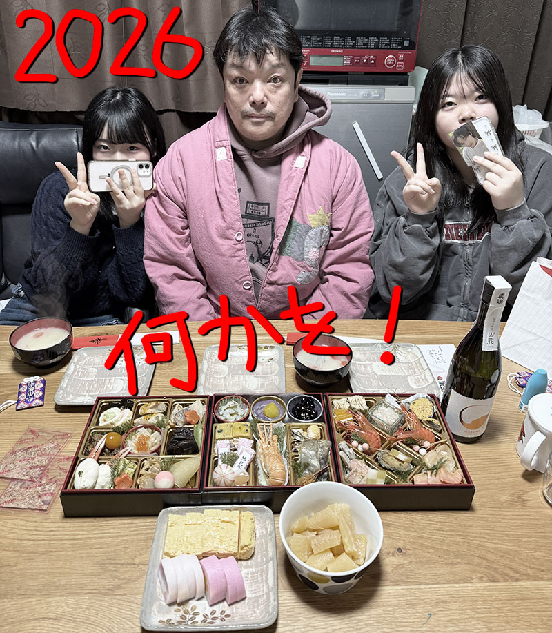 | 2026/01/03土 二日酔い初め ↓前 次↑ めでたく昼過ぎまでもがいてました。 ![]() 残り物鍋焼きうどん食えるまで復活。 ![]() 徹夜で部屋の整理しててワイより遅かったこたんこの家庭科の宿題にあやかった夕食でした。 ↓前 次↑ | ||
