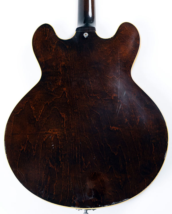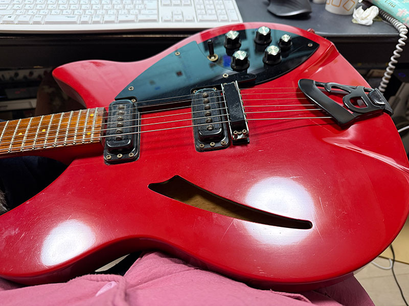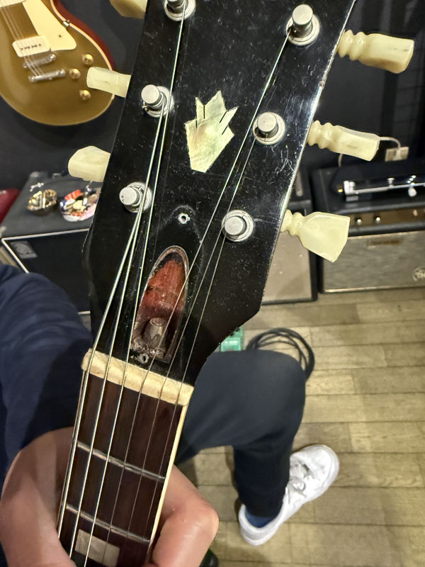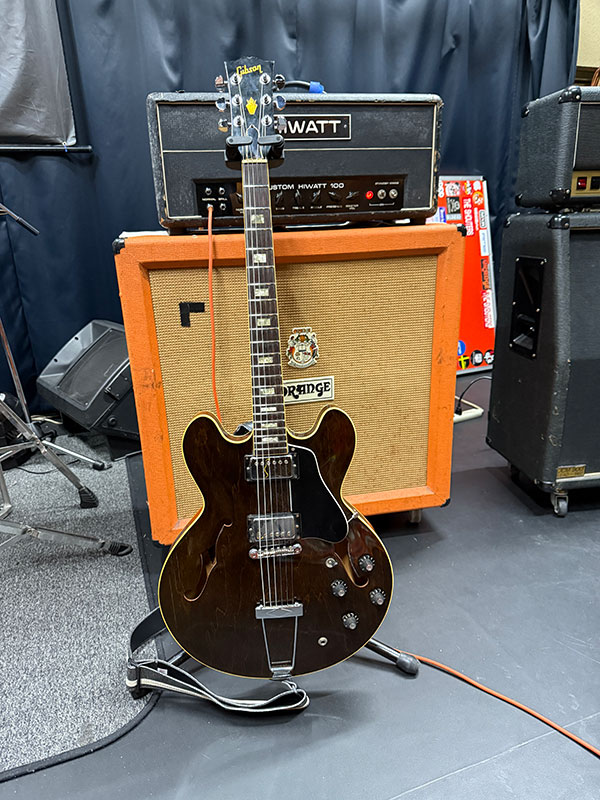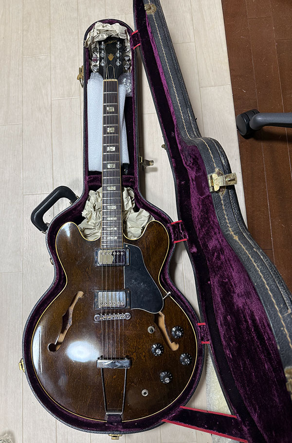 | 2026/01/16金 70年代マホネック335 ↓前 次↑ 女王送って帰ってきたらOKD君が土産持って来てくれました。 ![]() チリパウダーめちゃ楽しみ!そして工場から帰ってきたら本年1本目が届いてましたね。 ![]() にしても昨日の朝、出張に行く前にポチってもう届いてるよw ![]() 毎月のよに小物買うけどデカいのは初めてデス。 ![]() ケースは当時の物とのこと。オリジナルかな? ![]() どいちゃんw ![]() 年末の福岡旅行でこたんこと来店して試奏した以来の再会。 ![]() というコトで Gibson/'75 ES-335TD Walnut ※過渡期のマホネック ![]() マツナガさんとメイプルネック335が今熱いと盛り上がってて、どれか買おうと思ってましたがまさかのマホネックです。 ![]() 60年代ナローネックは勿論70年代前半も高騰してるので諦めてました。 ![]() そもそもこの色は自分的に無いと思ってましたが清志郎が340のウォルナット使い倒してたとムックで知って考え方改めました! ![]() 勿論小倉で試奏して決めたワケですが、その時ロッドカバー外して写真撮ったのをAIに判別してもらったりもw ![]() 手持ちの廉価版キワモノ325はシルバーですがやっぱゴールドが王道ですな。 ![]() 35年前に生まれて初めて買ったエレキが実は335でした、バイギブですが。 ![]() GIBSONではようやく初ですな。 ![]() 勿論ナローネックです、かなりの。 ![]() 75年ですがヴォリュートは控えめかな?ペグがGROVERに交換。 ![]() キズはまあこんな物でしょう。 ![]() 345も欲しいのだがw ![]() ブランコのゆるいテンション好きなんデス。 ![]() 刻印ナンバードPAFですね。そしてブリッジサドルも交換とのこと。 軽めなのは試奏した時にワカってました。 ![]() そういや335てめちゃ久々、京都時代初期のバイギブのチェリー以来35年ブリでした感慨深い。ウッドマンのワインレッドや渋谷のチェリーとか買い逃し何本か有りましたが待つ男正解やったと思いたい。貯めてた楽天Pも無くなった!ガンガン弾きましょう。 ↓前 次↑ | ||