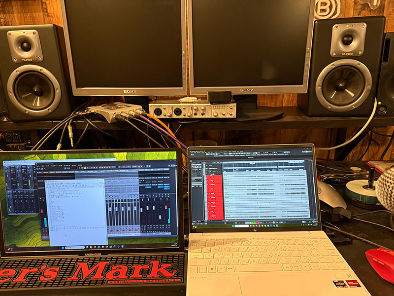 | 2026/01/17土 ものっそ叫ビ隊DrREC at 定やんスタジオ2日目 ↓前 次↑ 女王遂に共通テストです。とは言え私立専願かつ共テ利用はしないらしく試験慣れ目的だとか。 ![]() 帰って爆睡してたらダイゴ君が来ました。外壁塗装の色選びという超重要案件デス。 ![]() 鬼嫁の希望でオレンジに! ![]() お昼に女王お迎え。世界史がズタボロで国立にせず良かったとも。。 ![]() 爆量のインドカレー、こたんこのタメに残ったのを持ち帰りました。 ![]() 16時に定やんスタジオへ。 ![]() 大半は前回の状態なんでサクっとセッティングできるかな? ![]() 電源まわりに苦戦しつつ30分ほどで準備完了。 ![]() 初回に持って来るの忘れたテンキーを。闘いやすくなったぜ。 ![]() そして私用のMCマイク、ブース内のスピーカーから出してたのをゴギーのと同じくインターフェイスにさす用のブースターも。 ![]() これは便利です、叩いてる間もONでエールを送ったりもデキるw ![]() マイク2本でIN2つ使ってるけどミキサーでもあれば一発でイケるか。 ![]() ともかく録りましょう。 ![]() 長い曲は前回終わらせてたのでサクサクと進行。 ![]() 「混合」「丸亀ケン爺」「濃厚接触」「野菜食う」と4曲を1.5Hで完了w ![]() 2日間で都合10曲ですか。時間がタイトで用意デキてないのが後7つ残ってますが順調デス。 ![]() 同じようにバラしましょう。一旦お開きとなりました。 ![]() ゴギーにピックUPしてもらいポッピースターへ。 ![]() 何と4年ブリでした。。 ![]() トミちゃんと合流。サタデーオープンステージという感じでしょうか。 ![]() 77歳のお爺ちゃん強烈でした。。 ![]() 素晴らしきシステムww ![]() ジュリアちゃん弾き語りを3人で応援します。 ![]() 2杯飲んで演ってるけど負けないぐらい強烈、最高。 ![]() 解散したシャーレイポピーのメンバーよりも先にココに出るという明確な目標があったみたいデス。 ![]() 新バンド古君(!)もいるらしく、きっと井川君もスカムバンドとして注目するでしょう。 ![]() 曲もなかなかバラエティに富んでましたよ。 ![]() ギターがスカムでなく案外マトモだったよなあ。 ![]() 最高です。というコトでまたお開きとなってハローズで買い出ししつつトミちゃん邸に。 ![]() ここでの宅飲みに初参加します。定やんも到着しロボット・ミー軍団揃いました。 ![]() ペペロンチーノ激旨。 ![]() いぶりがっこもイカの辛いのも旨い。 ![]() 22:30ぐらいのスタートで凄まじいデス。 ![]() 大学の頃の飲み会を思い出すなあ。 ![]() 色んな人が絶叫オフィスに来てたよなあ。あっ、昨日TVに出た多田君も合流しておりマス。 ![]() 菜の花のもめちゃウマかった。 ![]() ジュリアちゃんが引き続き最高最強やったコトは覚えてます。 ![]() 5時前帰還。12時間後も飲み会なんだが。。 ↓前 次↑ | ||