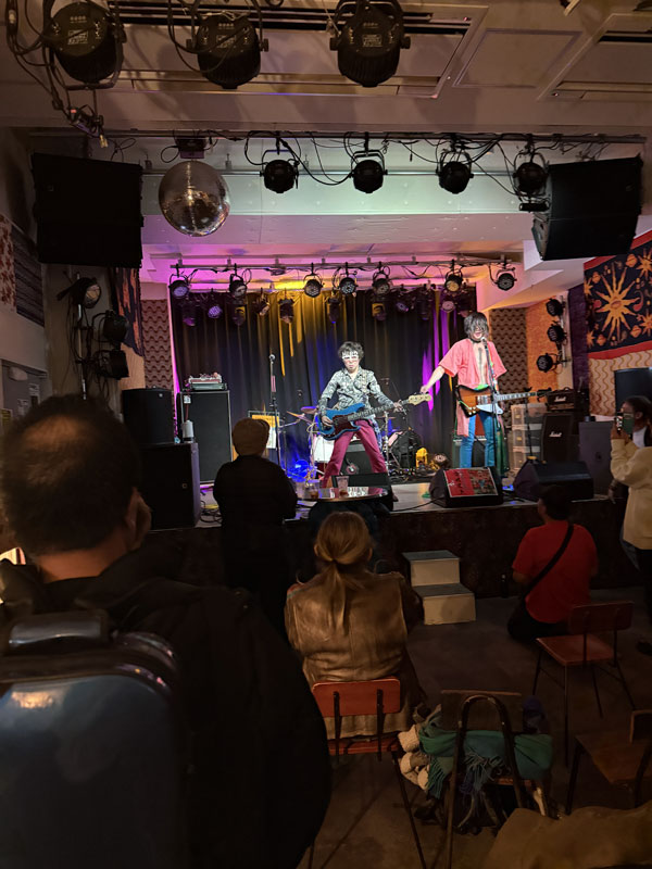 | 2026/01/24土 初サタデー難波屋サソリ大阪ツアー 2日目 サソリワン・ボス ・日光壮大 at 動物園前難波屋 ↓前 次↑ はい、必然性が感じられないぐらいの前日飲みでした。。 ![]() 10時前に待ち合わせしたコトを悔やみましたが何とか出発。 ![]() 岸本さんと羊さんと難易度の高い店を目指します。 ![]() 土日しかやってないおでん深川、10時前着で口開けに成功。 ![]() おばちゃんにテキトーに盛ってもらいました。 ![]() 甘めで予想以上に旨い!使い方マスターしたので次から気楽に来よう。 ![]() スタンド八トリもデビューしてもらいましょう。 ![]() 後で気づいたけどオアシスセット1100ペソじゃなくモーニング500ペソ行くべきやった?てかメニュー落ちした!? ![]() ただオアシスのが豪華なんですな。 ![]() しかも3人で内容が違っててシェアして最高みたいな。 ![]() 岸本さんは翌日も行くことに。。 ![]() 岩田屋酒店実に9年ブリです。 ![]() 前は椅子もあった気もするが。。 ![]() 何かキレイになってる?自分で取るのええわあ。 ![]() めちゃええ感じですね。 ![]() てか夜に何があるのか皆忘れてますw ![]() 連日のニンニク丸揚げw ![]() 何だ、もっと来ておけば良かった。 ![]() となりに権兵衛あれば最高なんですがね。 ![]() アー写撮りたい! ![]() 元祖ホルモン テツで〆ましょう。岸本さんオススメでネラってましたが移転後ようやく来れました。 ![]() 基本マルフクと同系統ですが高級メニューもありマス。 ![]() そして中がスタンドで外のテーブル席が椅子付きというシステムに唸ります。 ![]() 800ペソの上タン東京の気の利いた焼きとん屋にしか置いてないブツで大いにアリ。 ![]() ええぞ。 ![]() 煮込みがカレーなのも前述と同じ、最高! ![]() ベースの安いホルモン焼きも十分で、昨日からずっと行列のマルフクもう要らんかもね。 ![]() ここもほぼ満杯でしたがね。 ![]() さあホテルに帰って休みますか。 ![]() そして夕刻?ライブモードであります。 ![]() ちょこっとだけ顔出しました。ジョガー先輩らの爆笑トークw ![]() 快人もグランマ号に衝撃を受けてましたね。。 ![]() 16:30入りです。1Hで4組リハやろうというのがそもそも無謀でしたね。。 ![]() 完全に私のミスですが17:30開演のトコロ17:45でもリハやってますw そもそも入場無料なんでお客さんには入ってもらいレアな?風景も見てもらいました。席は埋まり入り口はスタンディング状態、都合30分ほど押してスタートです。 01-みなみちゃん(OA) ![]() ![]() ![]() このところずっと演ってもらってますがこんなに埋まってる前で演らせてあげられ感無量。いつもより元気に攻めてましたね。 ![]() ニコバンのスタンバイ、何とか場所確保。ここは良いわw ![]() 大活躍予定の井上さんのシンセの後ろにプリンストン2を置き、間に何とかミニボードの場所を確保しました。 ![]() タブレットホルダーいらなかったな! 02-日光壮大(香川) ![]() ![]() ![]() ![]() 限られたスペースの中で日光が躍動してましたね。この羽根を大阪で見せれて良かったデス。何気に '75 ES-335TD WalnutとMOSFET Overdriveのデビューでもありました、確認もデキた! 03-nutts ![]() ![]() ![]() ![]() ![]() ギターの方が来れなくなったり途中お店の鍵盤の音が出なくなったりして上モノがシュークリーム井上さんから借りたKEY(大感謝)だけになりましたが上手いんで問題なかったですね。ちなみにお店の生ピアノも鍵が2つ切れてるそうですw 澤野さんのアコウクレレええ感じでした、きっとジョガーも買うでしょう。 04-The☆ sweeets(香川) ![]() ![]() ![]() ![]() ![]() ![]() ![]() ![]() ![]() もはやロックンローラーの井上さん圧巻の大阪デビュー。日光バンドと合わせ界隈・お店では初物というのが意義ありと思っとります。岸本さんはチュードックのニューワール堂以来7年ブリですかね! ![]() ココ何回か、難波屋て広いなあと思ってたのから脱却! ![]() 入り口の方まで届くように演りましょう。 05-サソリワン・ボス