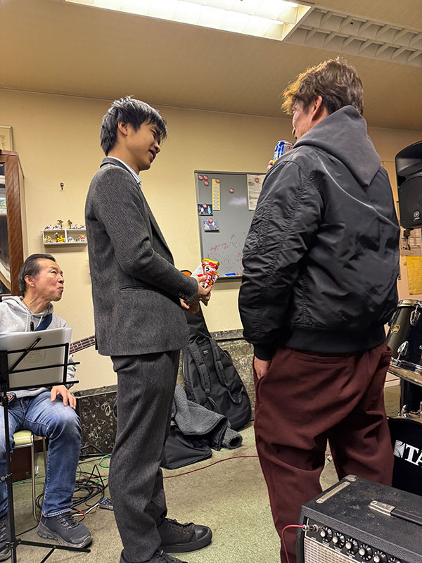 | 2026/01/20火 叫ビ隊ナッシュビルでスタジオ練習 ↓前 次↑ Web会議というのに初参加しました。 ![]() いつも日中の絶叫オフィスではちゃんちゃんこなんですがw、代わりに作業着羽織りましたよ。 ![]() これは便利やな、福山まで行かなくて良いのか!?夜はジャンパーでナッシュビルへ。 ![]() 満を持して75マホネック335を。予想通りのTONE! ![]() 引き続きワンマンの練習、今日は十河君も参加です。 ![]() いつもの4曲に加え「闘う私」も参加してもらいました。KBK時代に演ってたので叫ビ隊メンバーより曲的には先輩でしたね。先のRECも見越して意義ある練習となりました。3人の部分も含め久々の3Hでヘロヘロになりましたわw ↓前 次↑ | ||